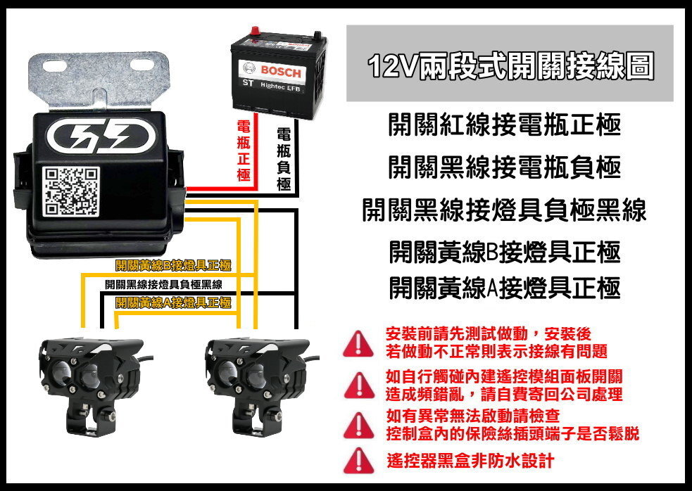 開關粗紅線與ACC細紅線獨立出線接到電瓶正極