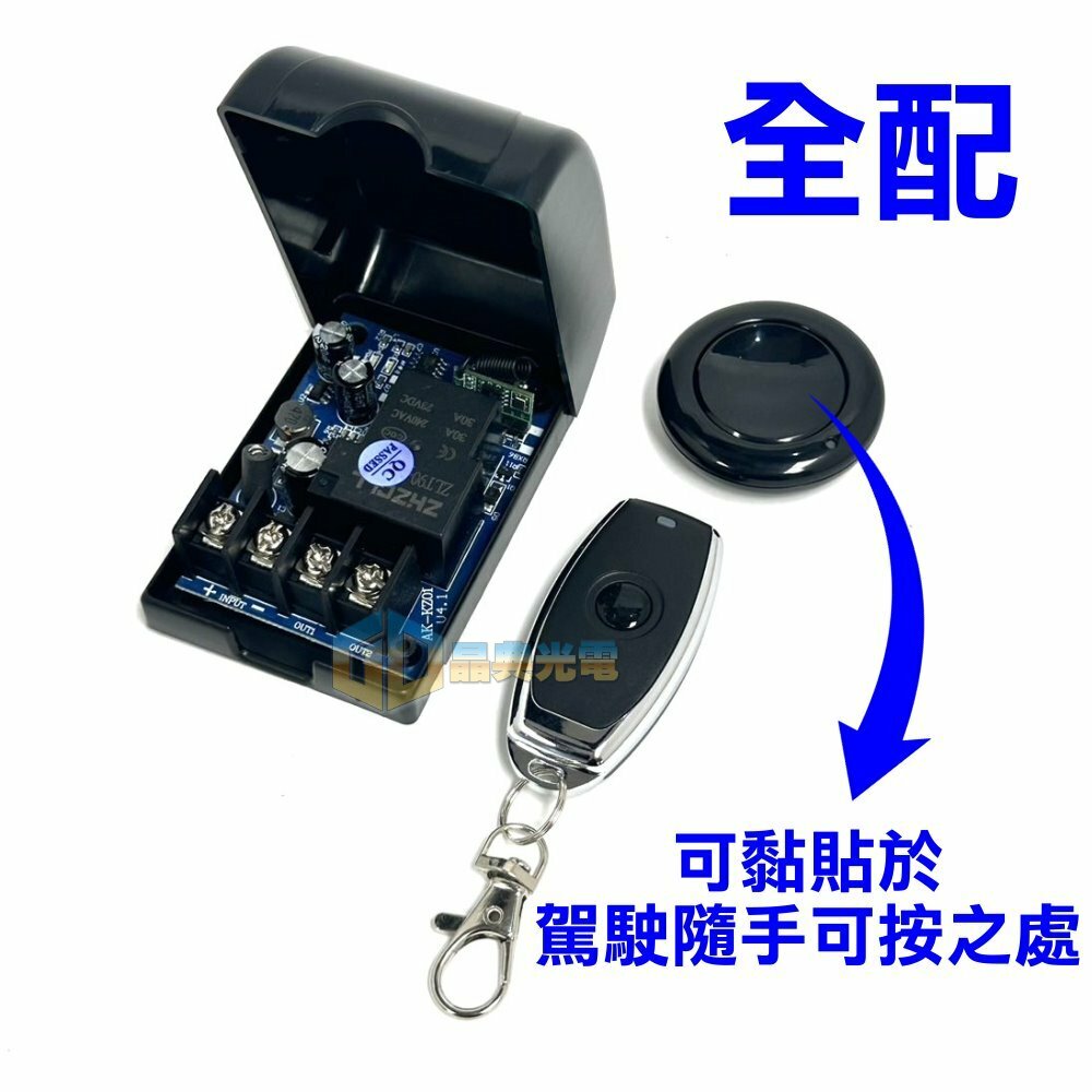 (全配):控制盒+鑰匙圈開關按鈕+圓形遙控器(可黏貼車內固定位置)