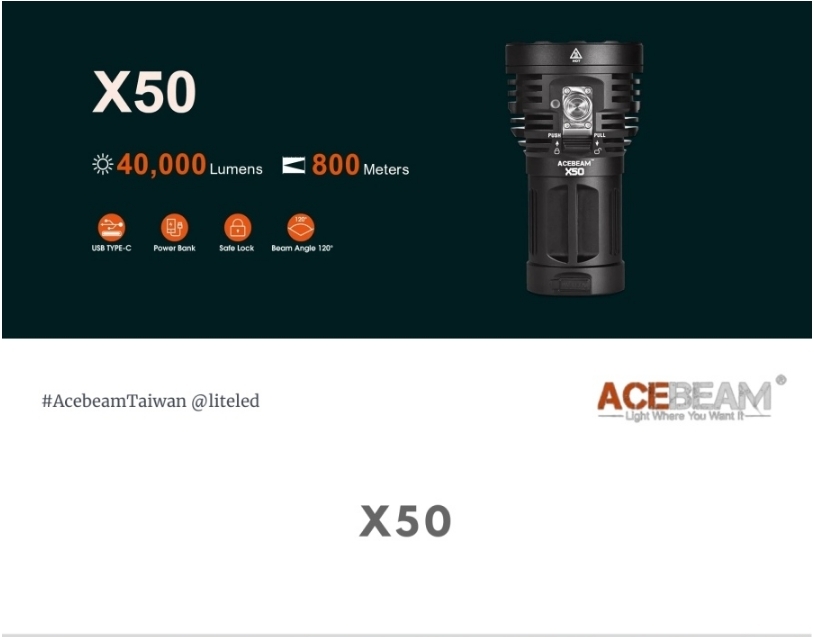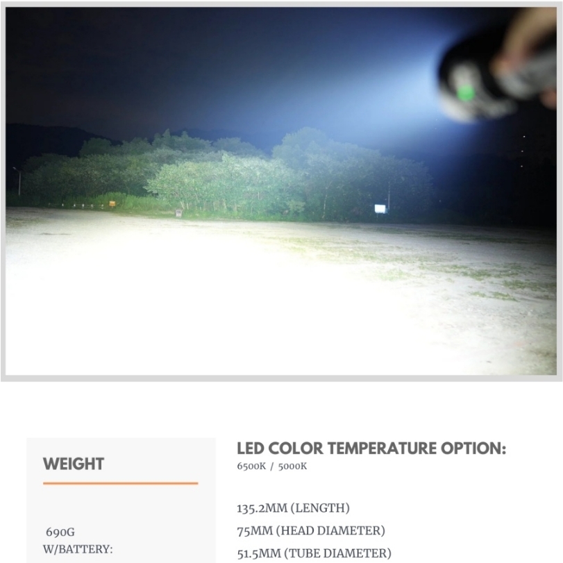 採用 8 顆 CREE XHP70.2 LED,最大輸出 40,000 流明
